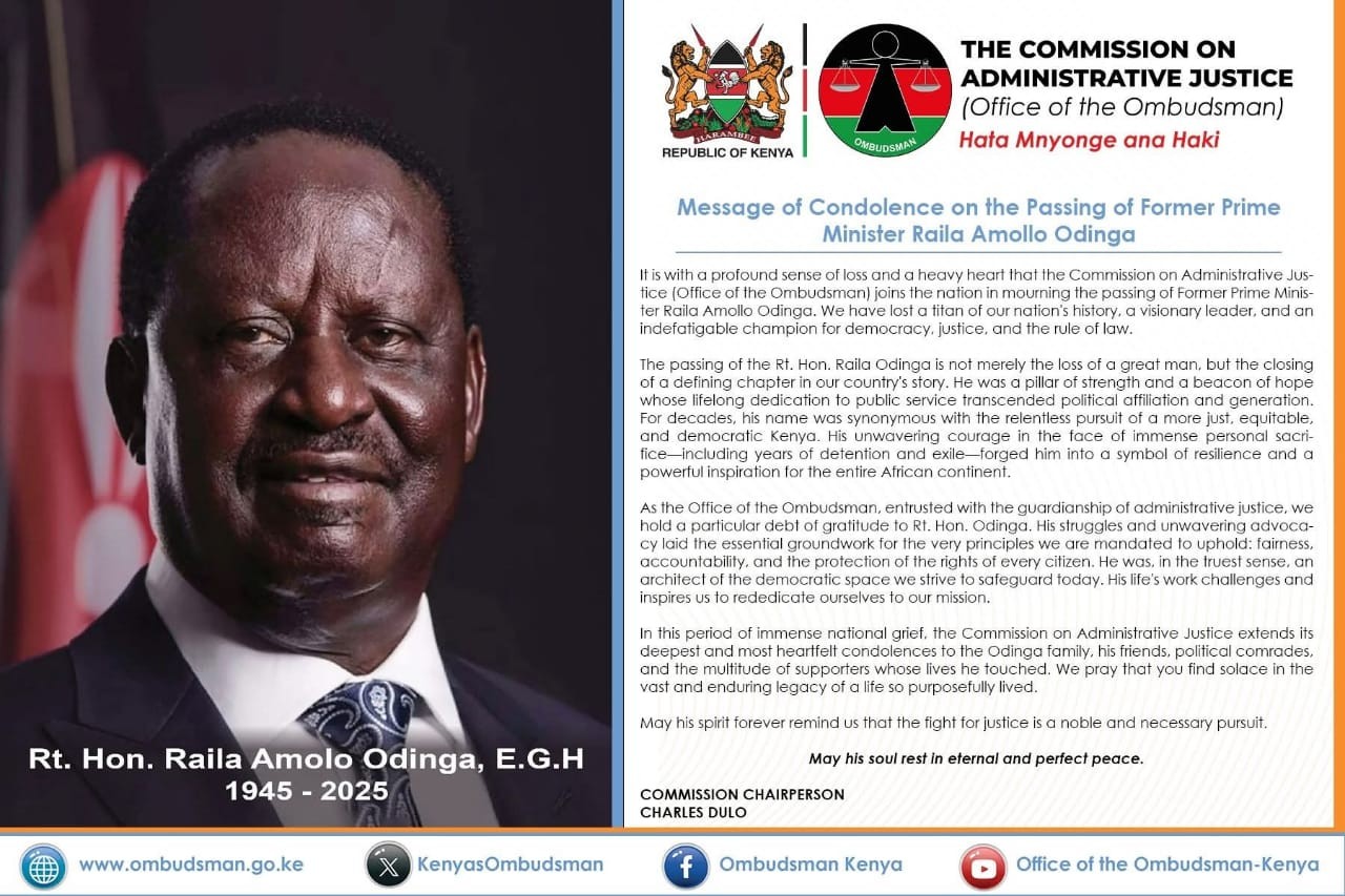 The Commission On Administrative Justice-Office Of The Ombudsman, Is A Constitutional Commission Established Under Article 59(4) Of The Constitution, And The Commission On Administrative Justice Act, 2011. The Mandate Of Office Of The Ombudsman Is Two-Fold, And Extends To Both National And County Governments. Firstly, The Commission Has The Mandate Of Tackling Maladministration (Improper Administration) In The Public Sector. In This Regard, The Commission Is Empowered To, Among Other Things, Investigate Complaints Of Delay, Abuse Of Power, Unfair Treatment, Manifest Injustice Or Discourtesy. Secondly, The Commission Has The Mandate Of Overseeing And Enforcing The Implementation Of The Access To Information Act, 2016.